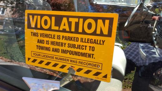 Three of New York’s finest were there to meet me. I showed them the sticker on the passenger window and noted that the truck had been parked completely legally on a public street only a few feet away from where it was not situated.