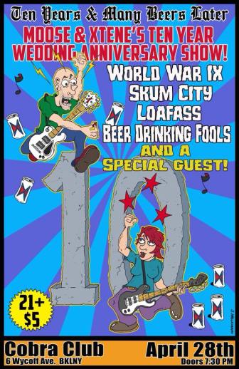 Mike Moosehead is the hardest working man in punk rock, and this weekend he’s playing shows with five different bands. Four of those bands are playing a special show to commemorate his and his wife Xtene Moosehead’s 10th wedding anniversary. The two are both punk rock bass players, though Mike plays guitar quite a bit also.